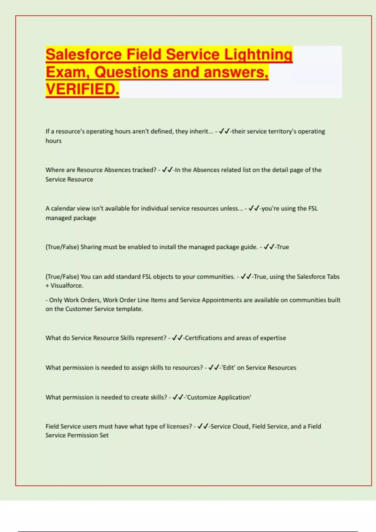 Salesforce, Exam Questions and answers, VERIFIED. LATEST EXAM PREDICTION PAPER FOR 2024/25. APPROVED.