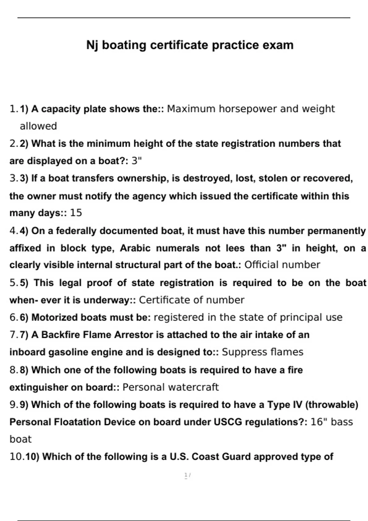 NJ Boating Bundled Exams Questions and Answers (Graded A )