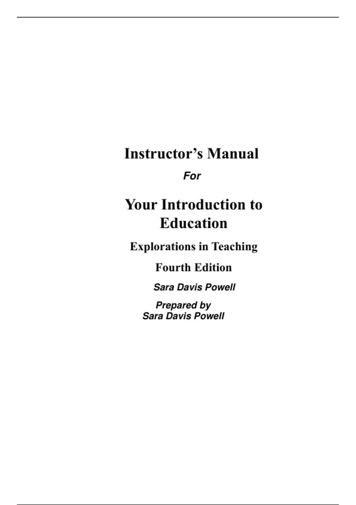 Instructor Manual With Test Bank For Your Introduction to Education Explorations in Teaching 4th Edition By Sara Powell (All Chapters, 100% Original Verified, A+ Grade)
