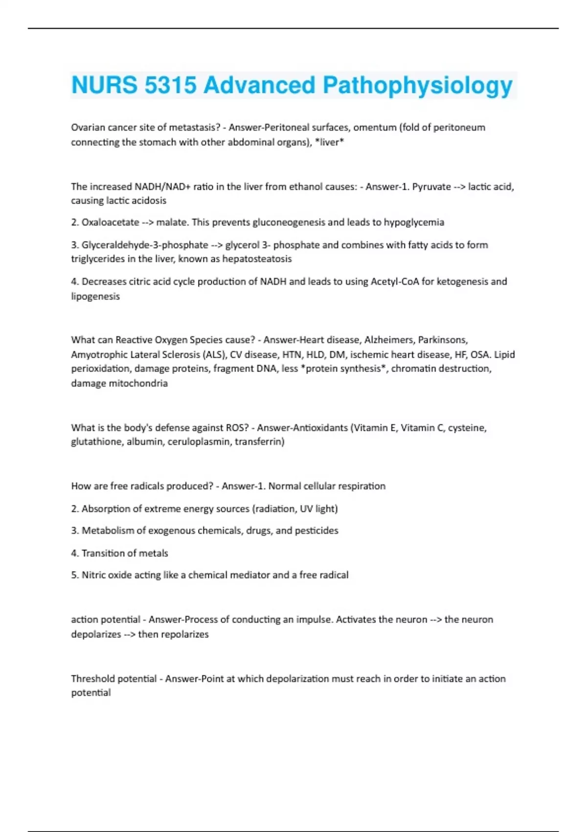 NURS 5315 Advanced Pathophysiology Questions With 100% Correct Answers.