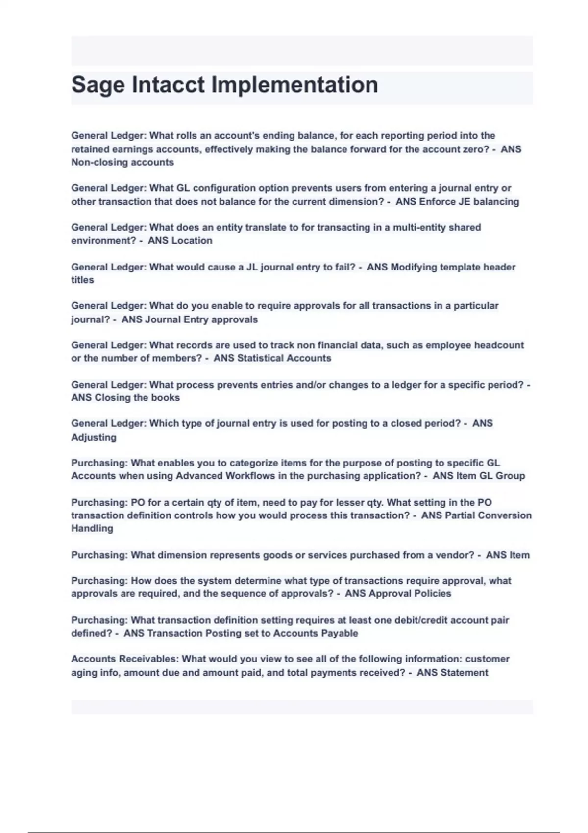 Sage Intacct Implementation Exam Questions with correct Answers 2024/2025( A+ GRADED 100% VERIFIED).