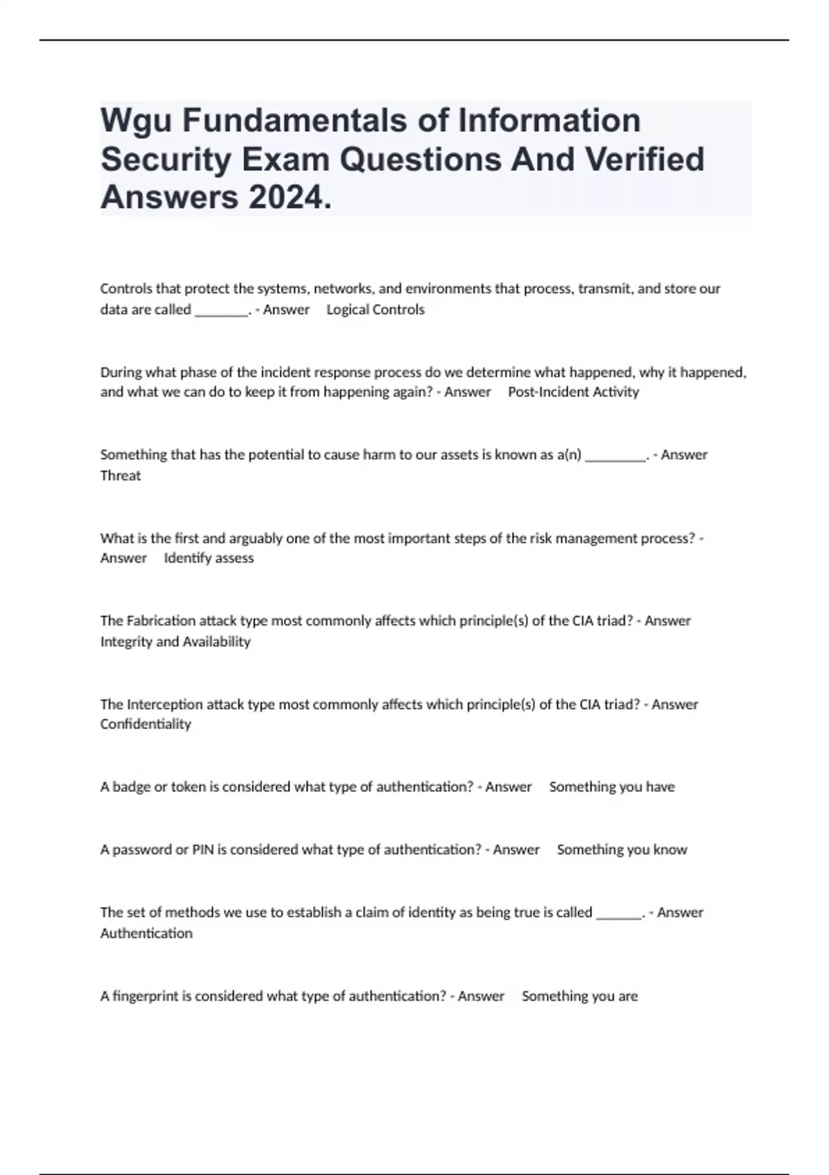 1 Exam (elaborations) C836 Pre Assessment Questions Well Answered Graded A+ 2024. 2 Exam (elaborations) Fundamentals of information Security Exam And Answers Rated A+ 2024. 3 Exam (elaborations) Fundamentals of Information Security Final Exam Well Answered Rated A+ 2024. 4 Exam (elaborations) Pre-Assesment C836 Questions Well Answered 100% 2024.