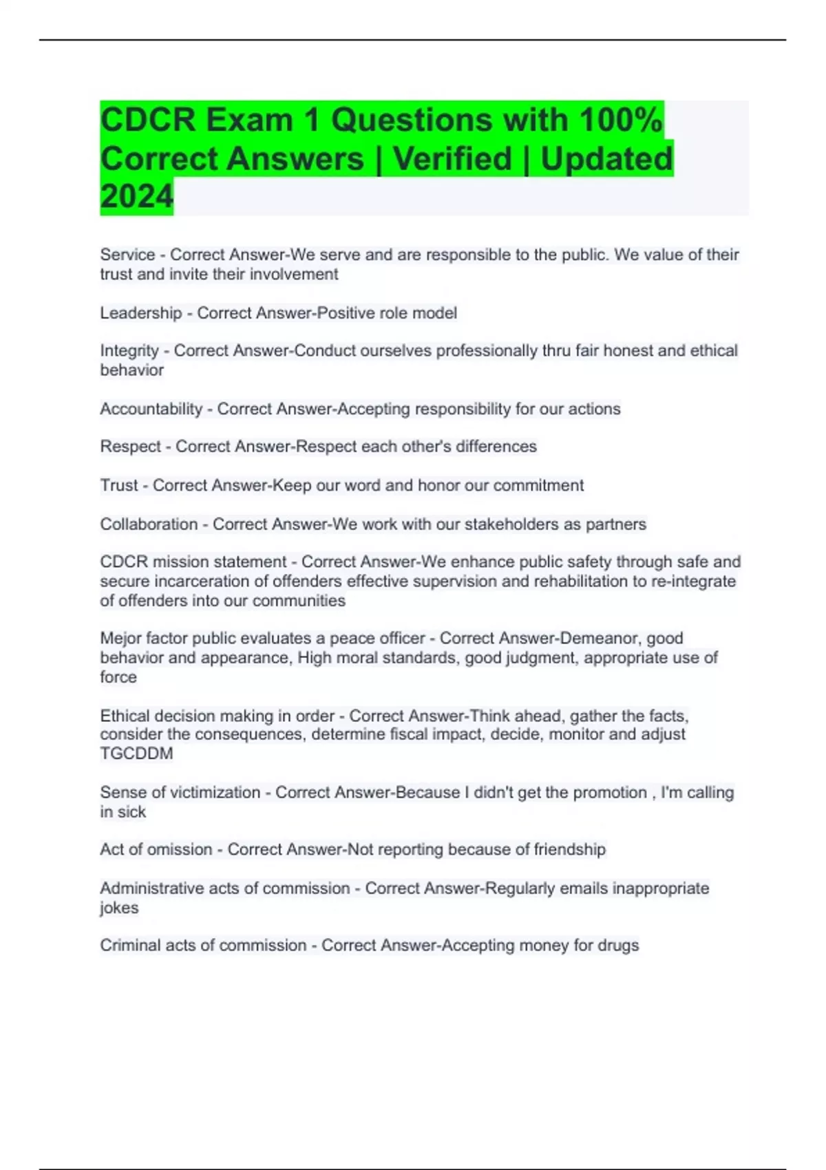Package deal for Cdcr Exam Questions with 100% Correct Answers | Verified | Updated 2024
