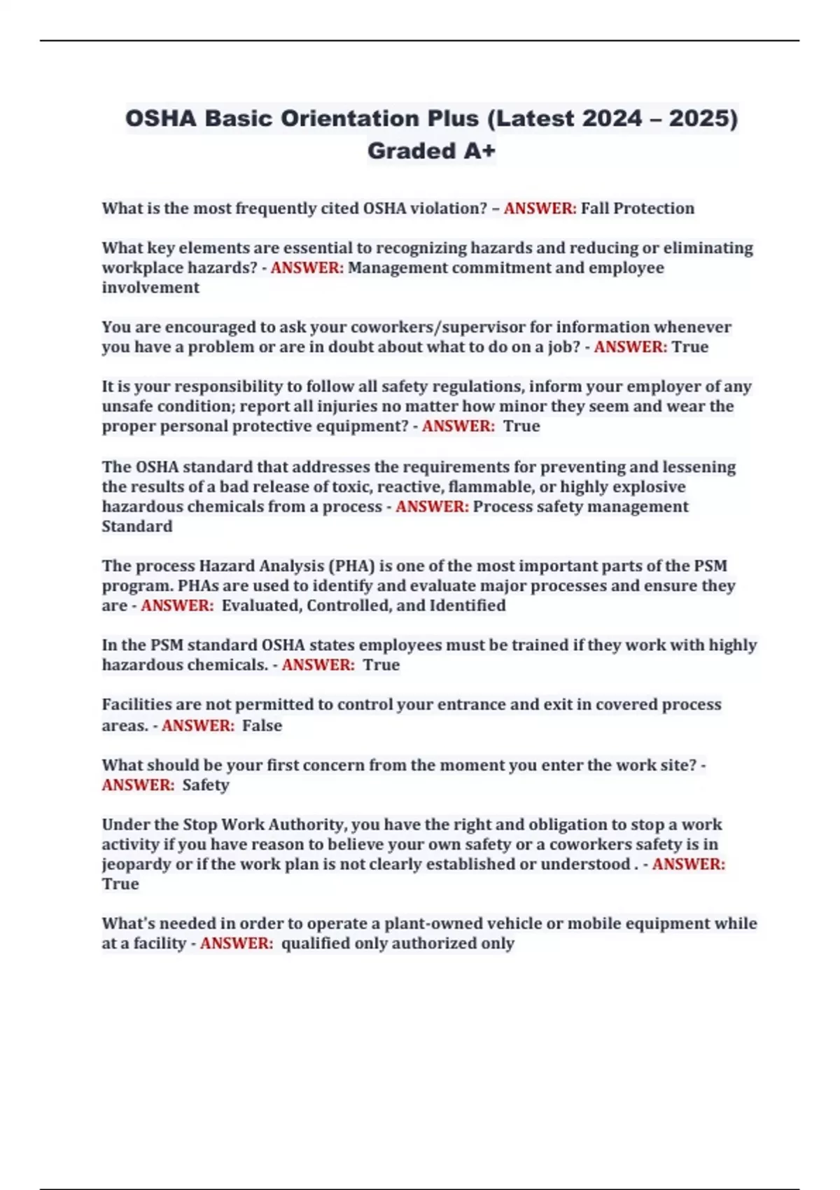 OSHA Test Questions and Answers (Latest 2024 – 2025) Rated A+