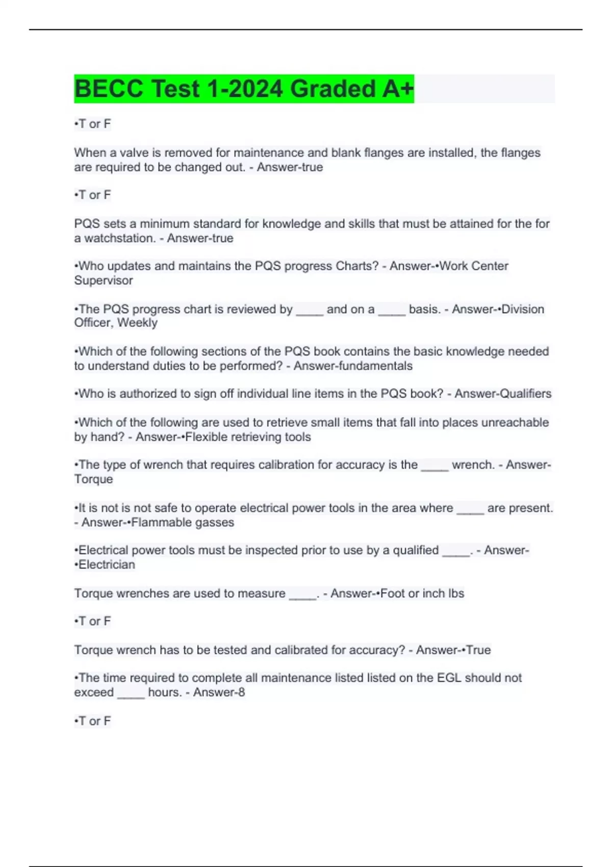 1 Exam (elaborations) BECC Test 1-2024 Graded A+ 2 Exam (elaborations) BECC MOD 1 TEST Solved 2024 100% Correct 3 Exam (elaborations) Becc mod 3 test answered 100% correct 4 Exam (elaborations) Becc test 2 with Complete Solutions 2024 5 Exam (elaborations) BECC TEST 5 GRADED A+- 2024 6 Exam (elaborations) BECC TEST 6 -Answered 100% Correct 7