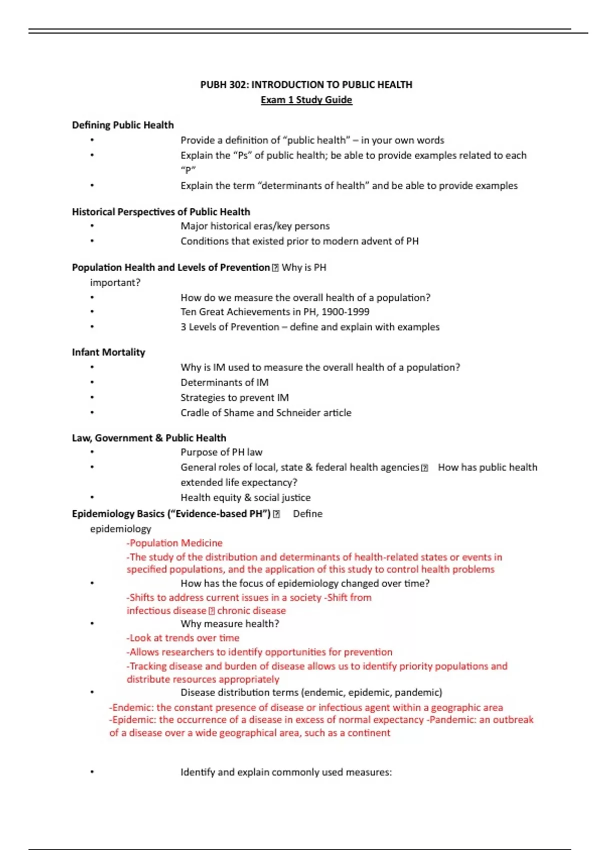 PUBH 302 final Exam – Galloway Latest Update 2024 Version 215+ Questions and Verified Correct Answers, PUBH 302 Exam 1 Galloway Latest Update 2024 Questions and Verified Correct Answers , PUBH 302 INTRODUCTION TO PUBLIC HEALTH Exam 1 Study Guide 2024 Upda