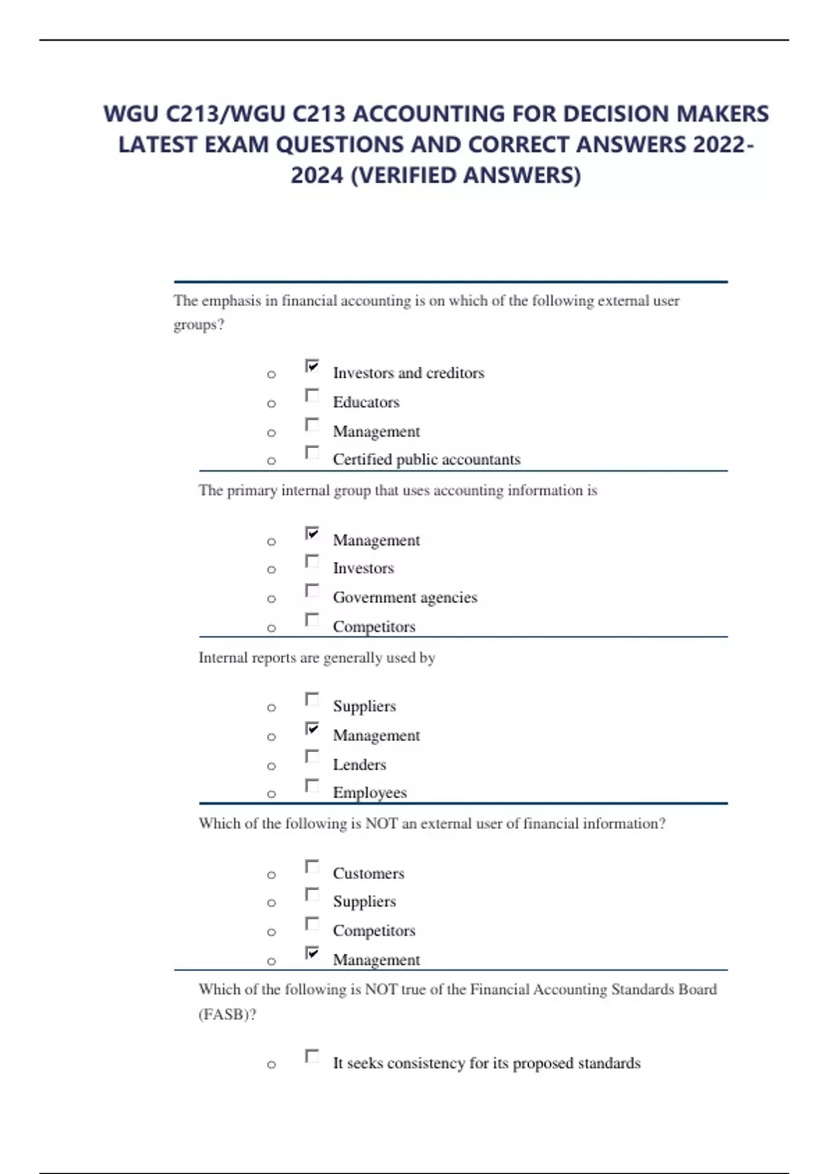 bundle for WGU C213/WGU C213 ACCOUNTING FOR DECISION MAKERS FINAL EXAM STUDY GUIDE QUESTIONS AND CORRECT ANSWERS ALL 11 CHAPTERS QUESTIONS AND ANSWERS