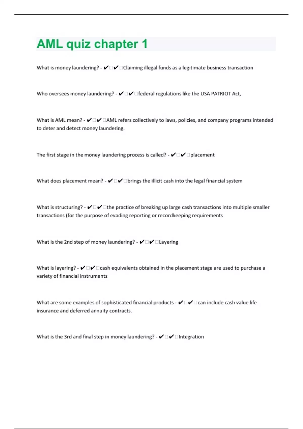 Anti-Money Laundering Questions with 100% Correct Answers | Verified | Updated 2024
