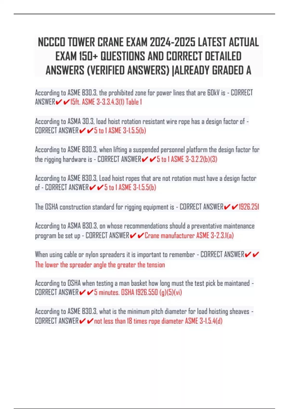 Exam (elaborations) NCCCO OVERHEAD CRANE EXAM / NCCCO OVERHEAD CRANE STUDY GUIDE/ NCCCO OVERHEAD CRANE PRACTICE QUESTIONS REAL |180+ QUESTIONS AND CORRECT ANSWERS |AGRADE 2 Exam (elaborations) NCCCO TOWER CRANE EXAM LATEST ACTUAL EXAM 150+ QUESTIONS AND CORRECT DETAILED ANSWERS (VERIFIED ANSWERS) |ALREADY GRADED A 3 Exam (elaborations)