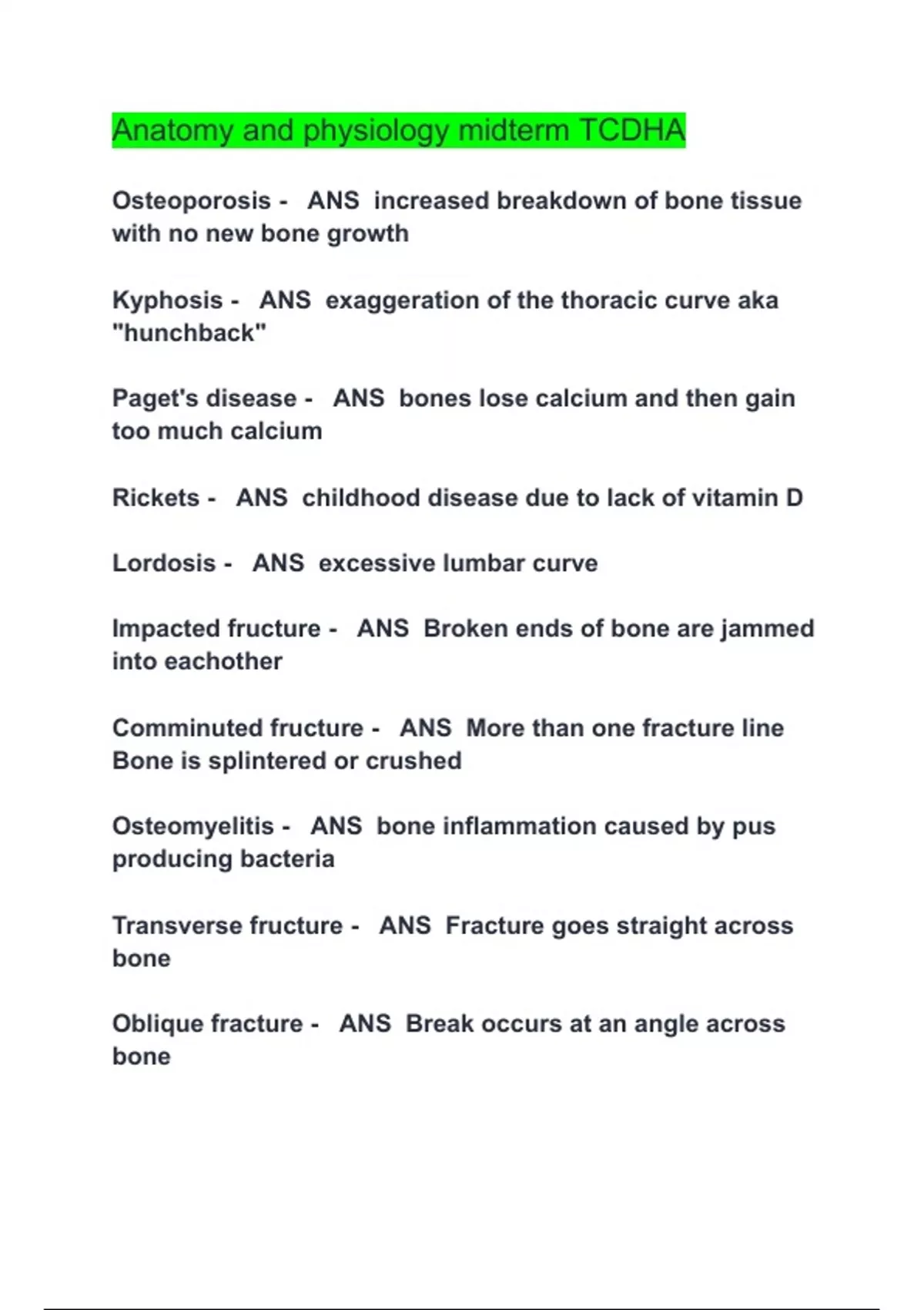 Anatomy and Physio Midterm 1 TCDHA questions with correct answers 2024
