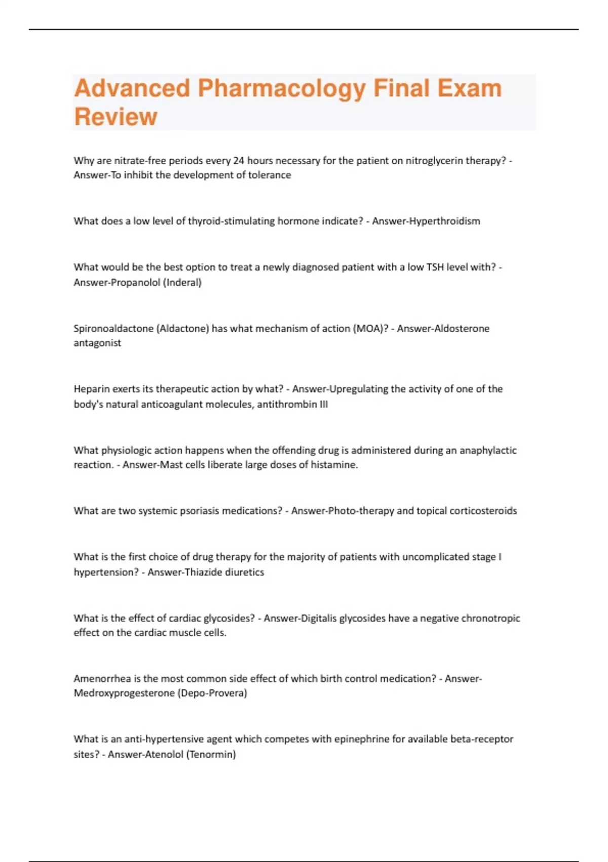 2024 Advanced Pharmacology Final Exam Review (100% correct and graded A+)