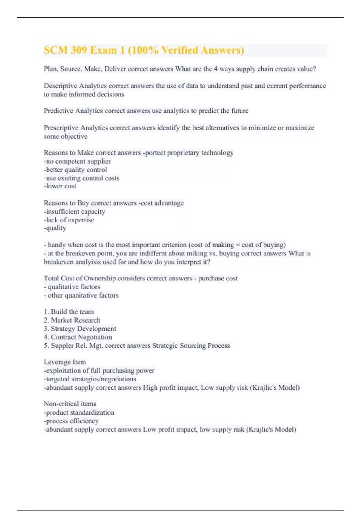 SCM 309 Exam 1 (100% Verified Answers) SCMT 309 Exam 1 (100% Accurate Answers) SCM 309 (ALL ANSWERED) SCM 309 UTK final exam (100% Error-free Answers) SCM 309 Quizzes (with Answers 100% Correct) SCM 309 Quiz 3 + 5 (A+ Graded Already) SCM 309 Quiz 1, 2, 4, 6 (with Complete Solutions) SCM 309 Midterm |with Complete Solutions| A+ Graded. SCM 309 Exam