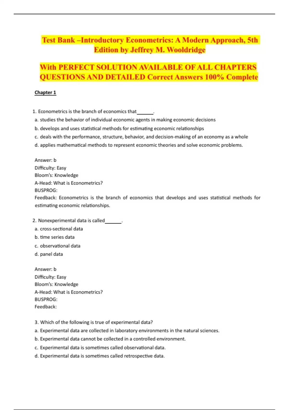 Student Solutions Manual to Introductory Econometrics by Jeffrey M. Wooldridge , Solution manual introductory econometrics a-modern-approach 4edition-solution manual & Test Bank For Introductory Econometrics A Modern Approach, 5th Edition by Jeffrey M. Wooldridge With PERFECT SOLUTION AVAILABLE OF ALL CHAPTERS QUESTIONS AND DETAILED Correct Answers