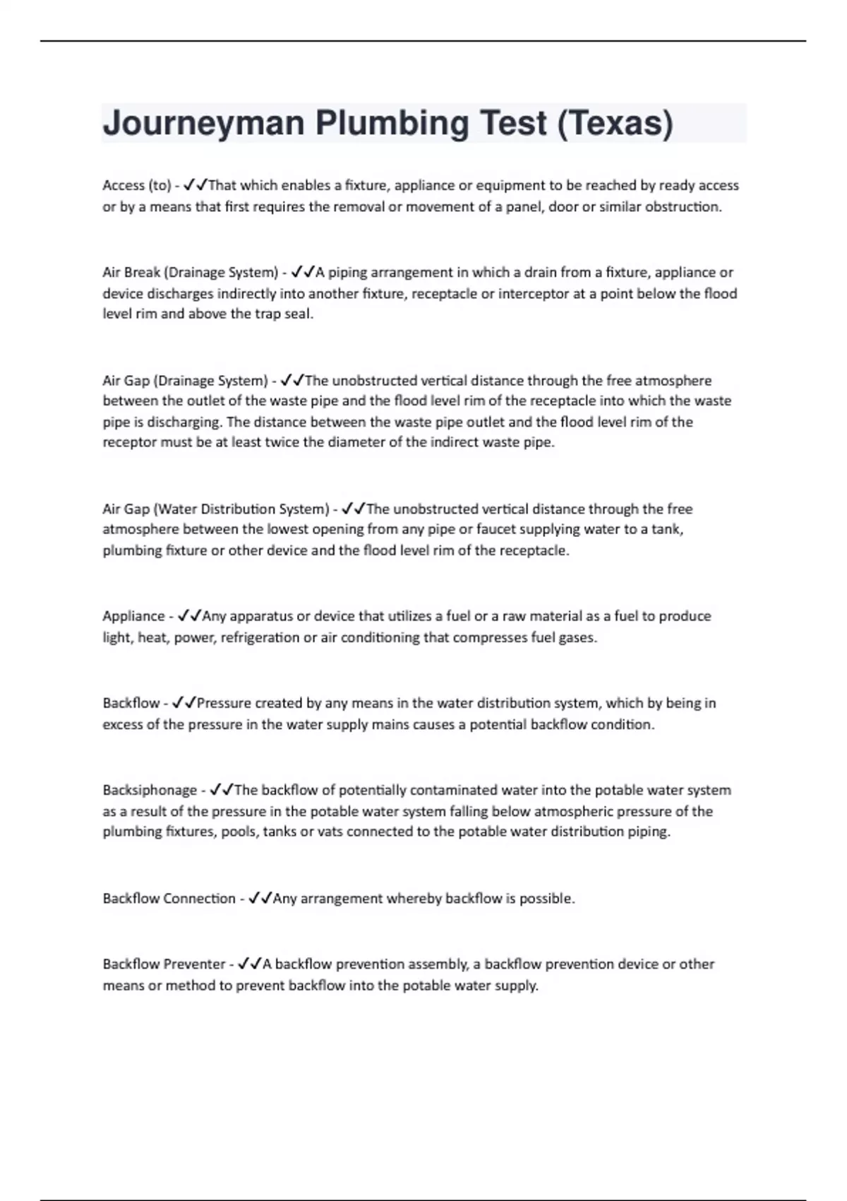 Journeyman Plumbing Test (Texas) (100% correct and graded A+)
