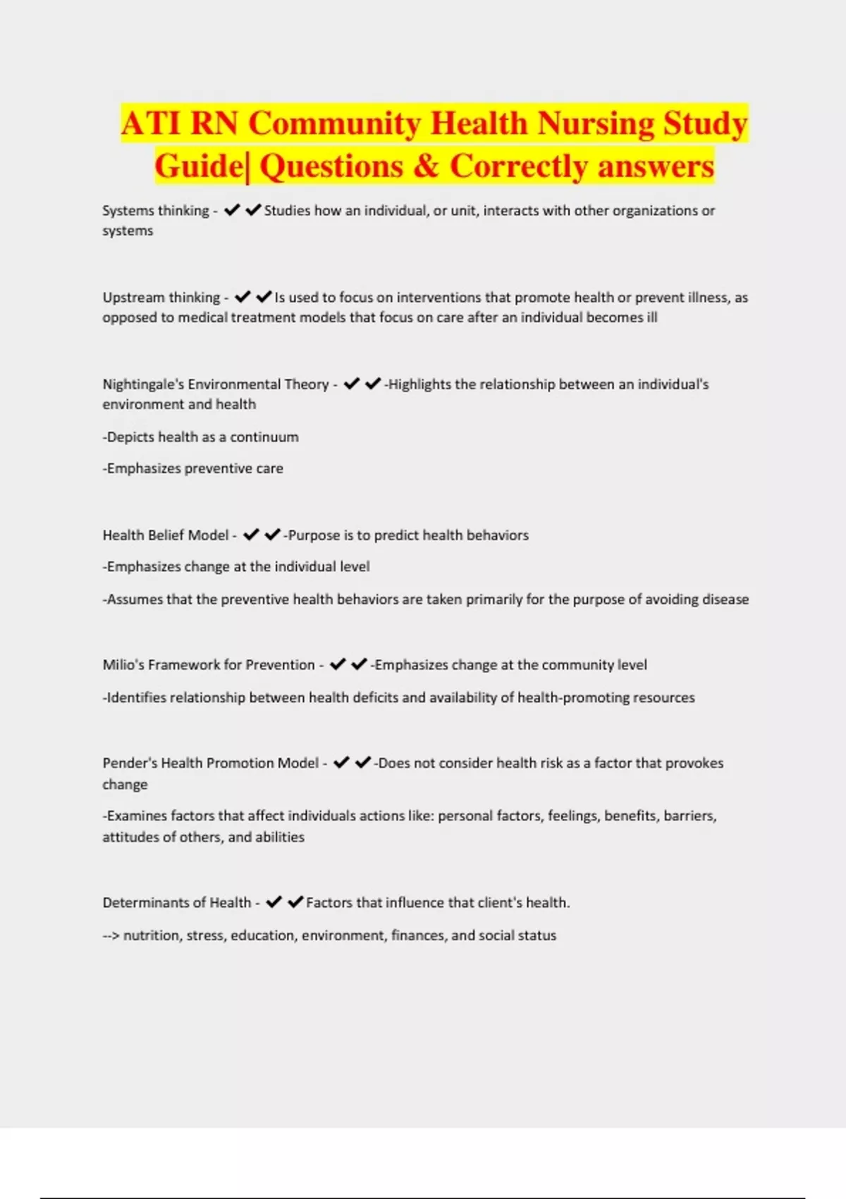 ATI RN Community Health Nursing Study Guide| Questions & Correctly answers