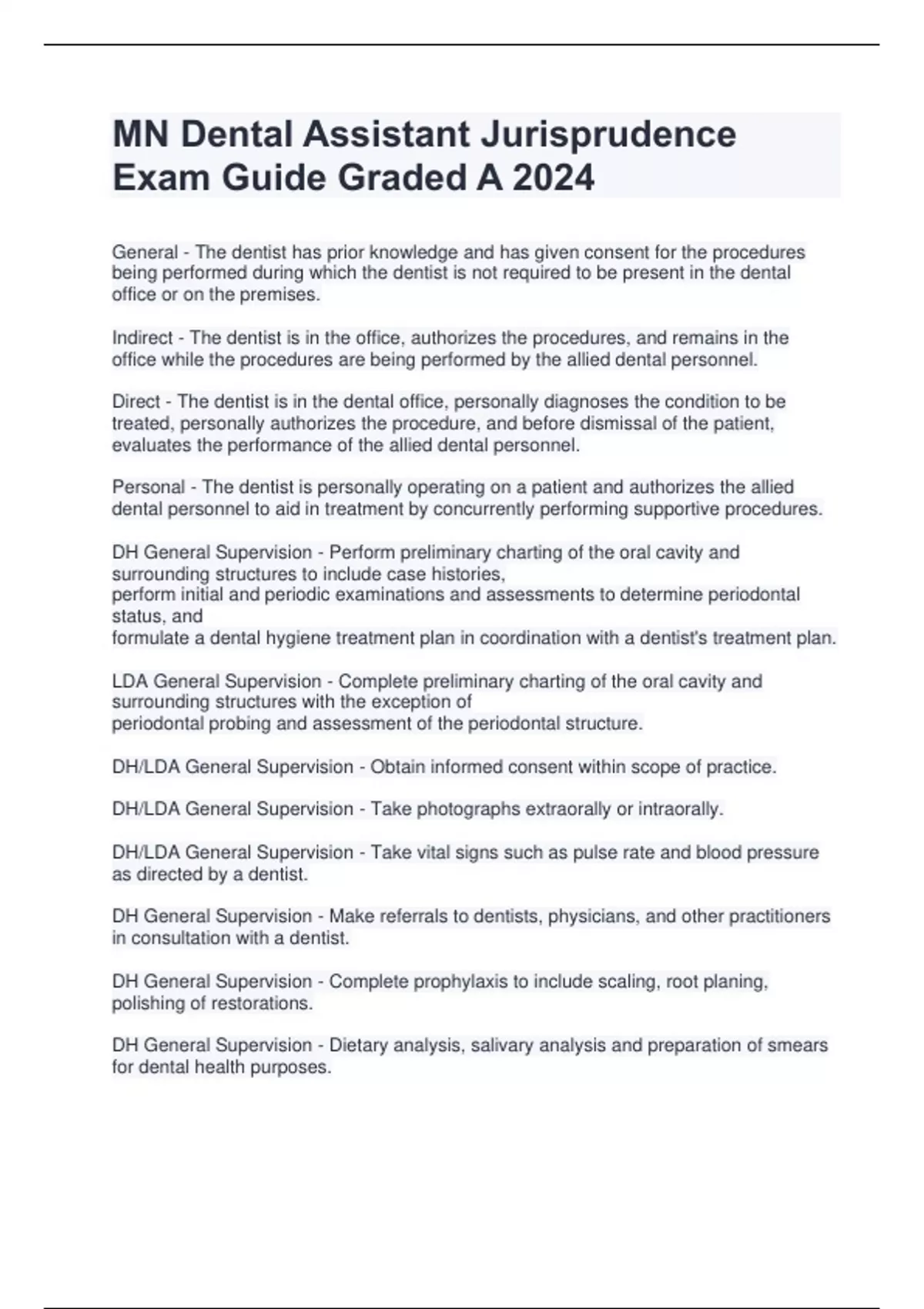 MN Dental Assistant Jurisprudence Exam Guide Graded A 2024