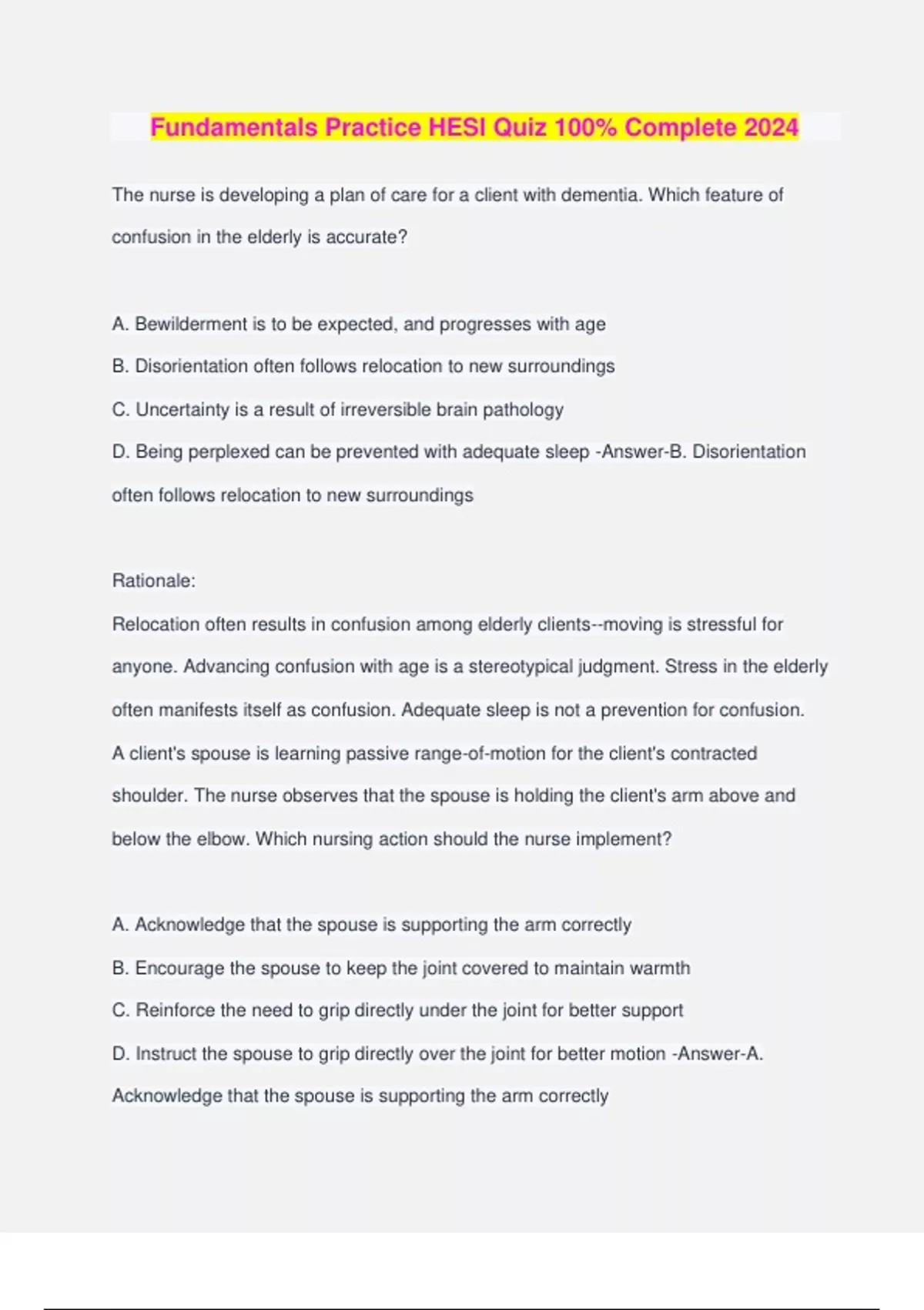 Fundamentals Practice HESI Quiz 100% Complete 202