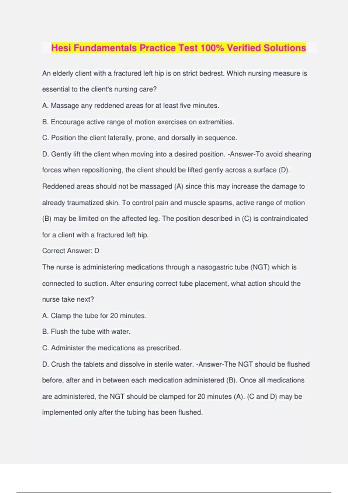 Hesi Fundamentals Bundled Exams Questions and Answers | 100% Verified & Updated 2024 | Graded A