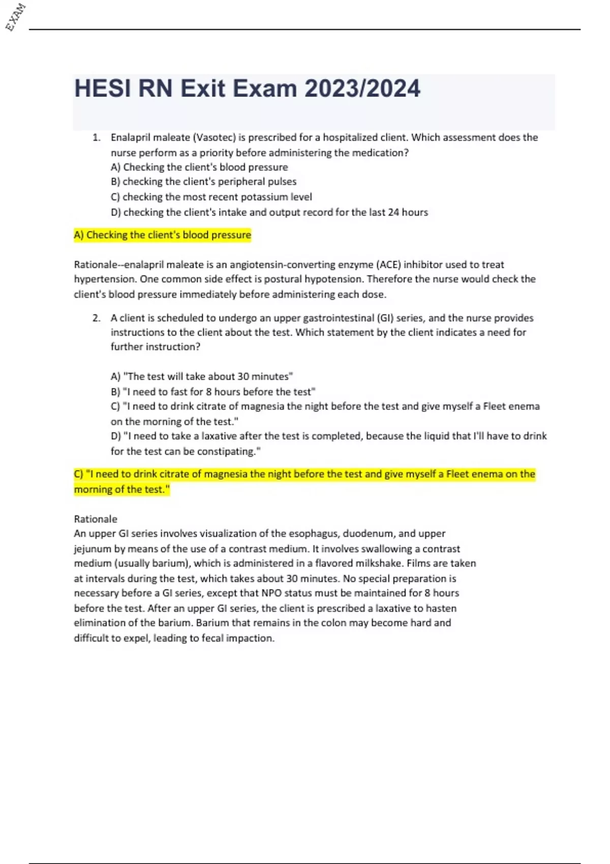 HESI RN EXIT EXAM LATEST UPDATE WITH VERIFIED QUESTIONS AND ANSWERS
