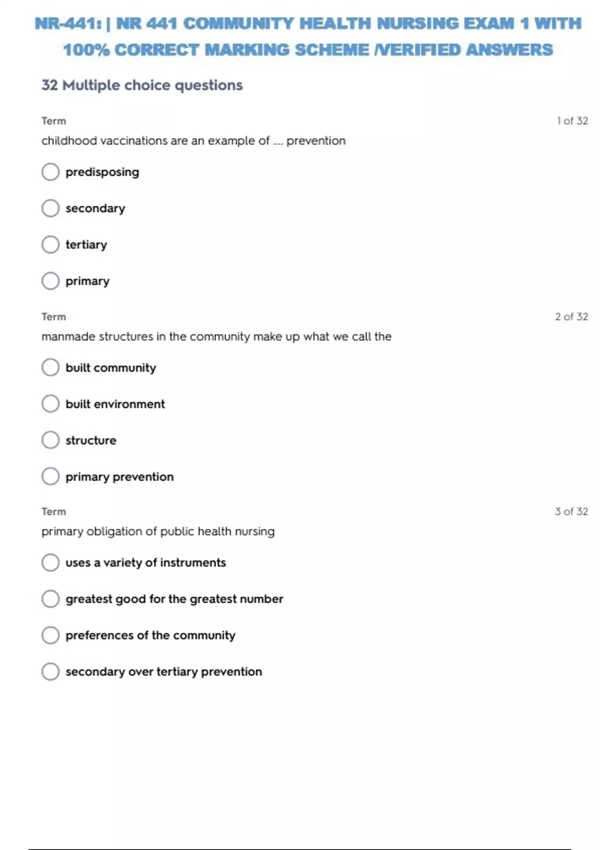 NR-441: | NR 441 COMMUNITY HEALTH NURSING EXAM 1 QUESTIONS & ANSWERS