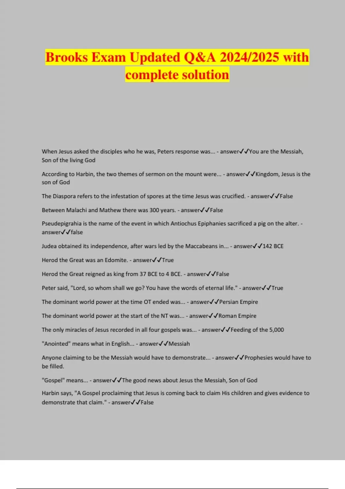 Brooks Bundled Exam Questions with 100% Correct Answers | Verified | Updated 2024