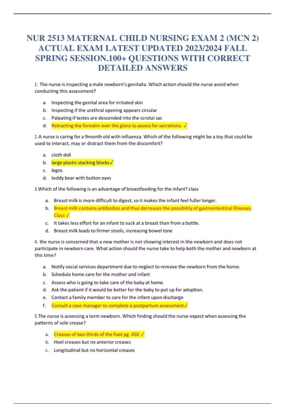 NUR 2513: PACKAGE BUNDLE FOR MATERNAL- CHILD NURSING HESI EXAMS|QUESTIONS AND ANSWERS WITH LATEST UPDATE- 2024|A+ GRADED