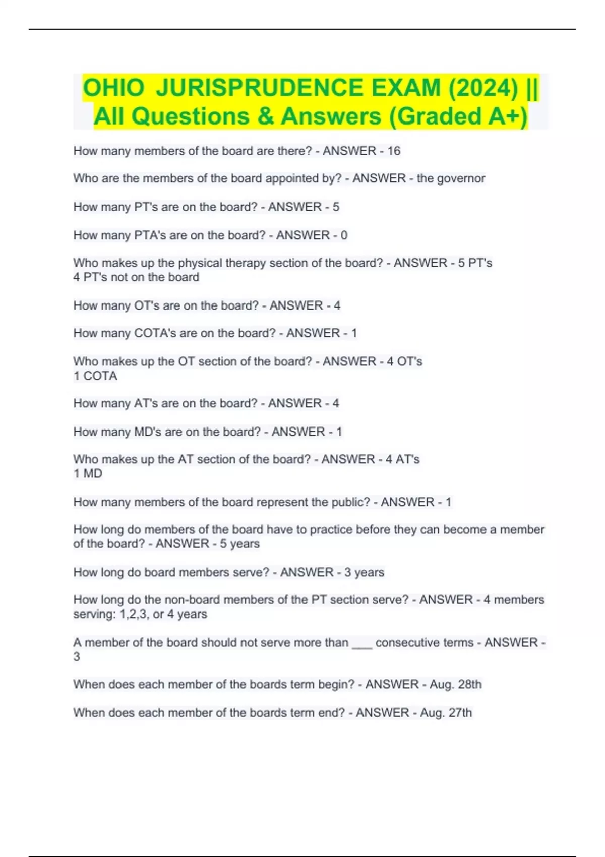 OHIO JURISPRUDENCE EXAM BUNDLE (2024) || With Complete Questions & Answers (Graded A+) (Guaranteed Pass!!) OHIO JURISPRUDENCE EXAM BUNDLE (2024) || With Complete Questions & Answers (Graded A+)