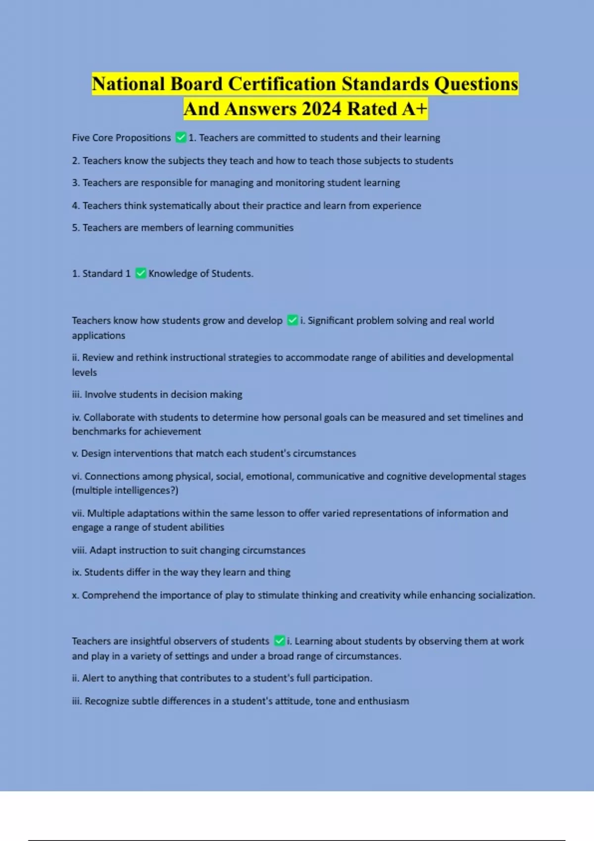 NBCT Package Deal With Verified Study Bundle Graded A+ National Board Exam Study Guide – Science Questions And Answers 100% Correct NBCT World Language Teaching Methods Verified Questions And Answers 2024 NBCT EA/Social Studies-History Component 1 Verified Questions And Answers