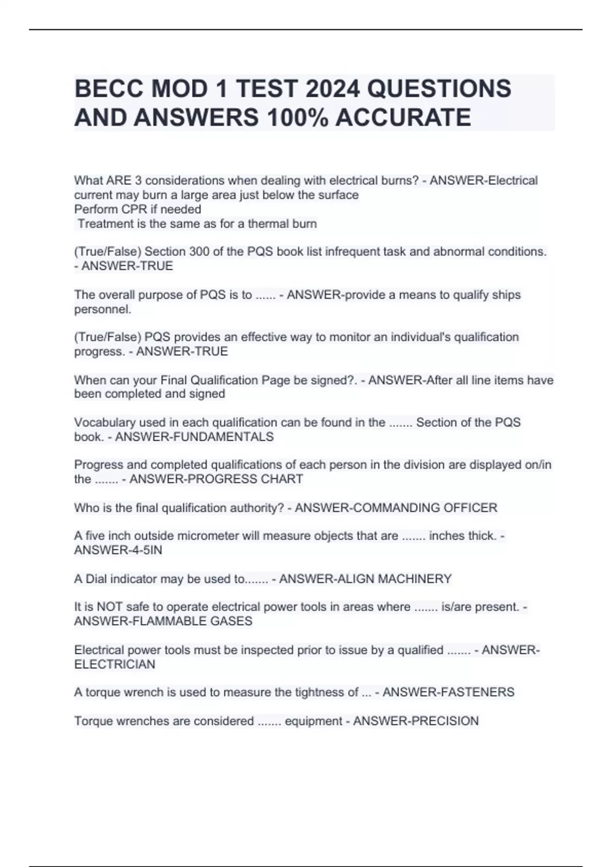BECC ( Basic Engineering Common Core)TESTS BUNDLE PACK WITH COMPLETE SOLUTIONS
