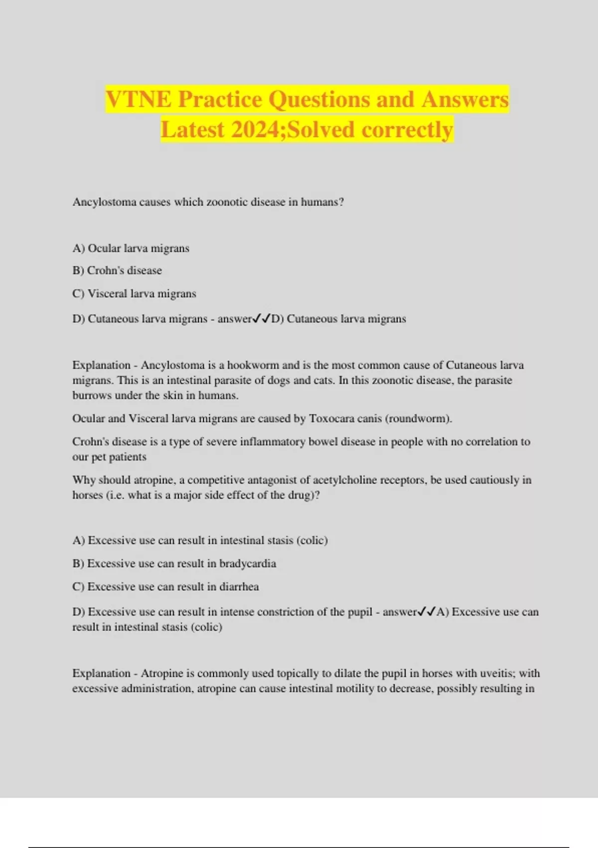 VTNE Practice Questions and Answers Latest 2024;Solved correctly