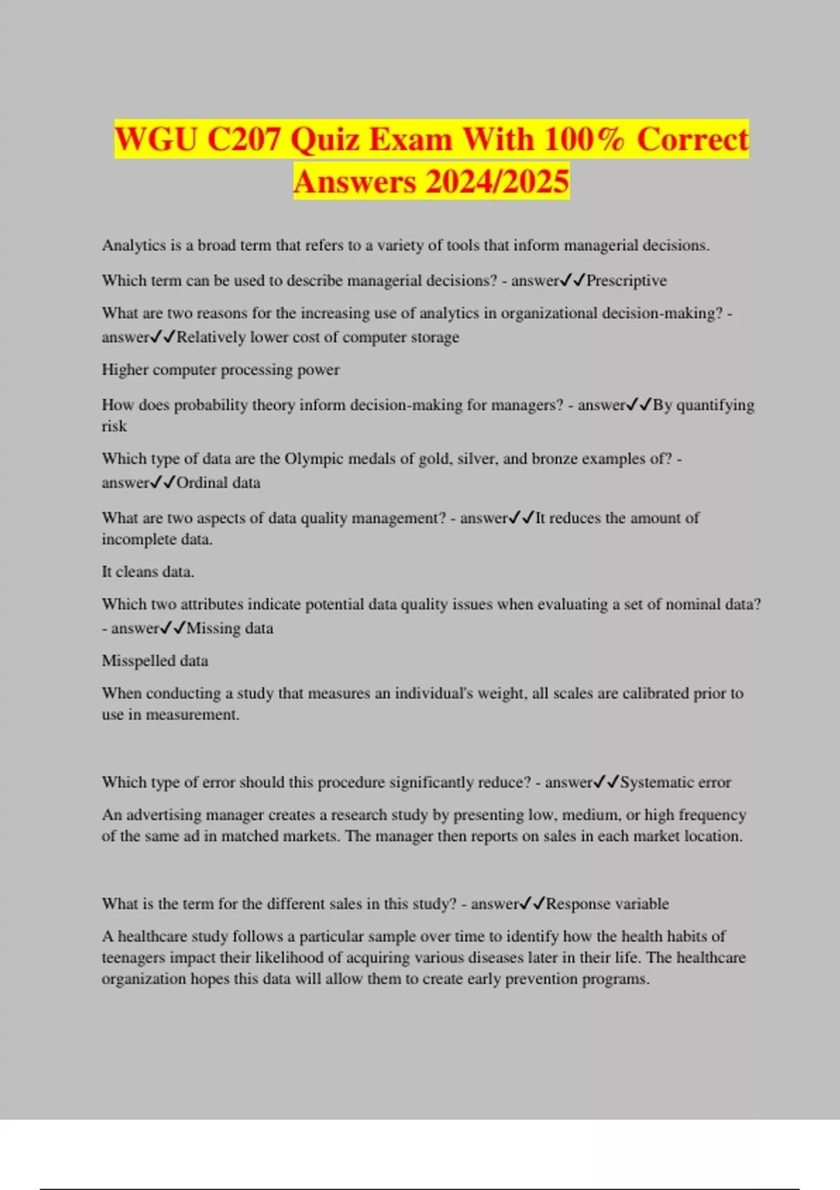 WGU C207 Quiz Exam With 100% Correct Answers 2024/2025