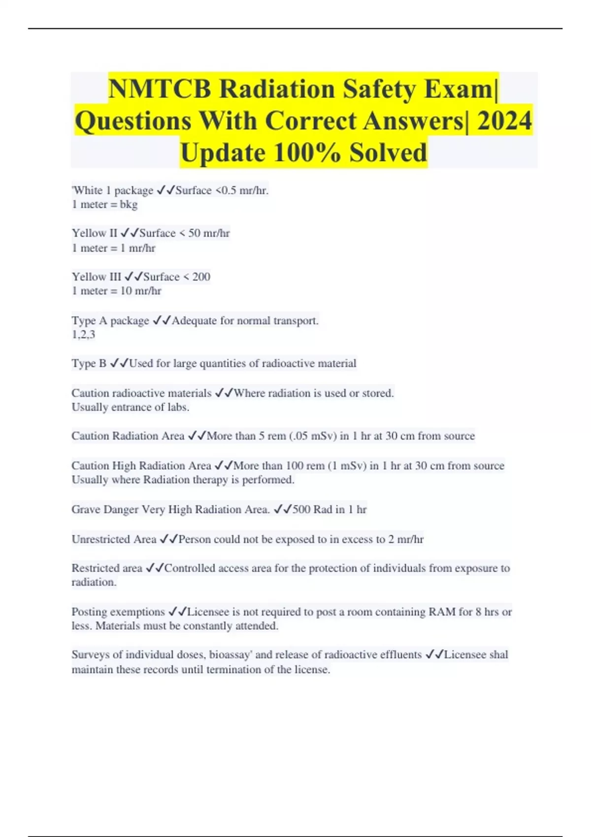 NMTCB EXAM PREP EXAM| QUESTIONS WITH CORRECT ANSWERS| 100% SOLVED| GRADE A+ 2 Exam (elaborations) NMTCB MOCK EXAM Questions and Answers| 2024 Update 100% Solved 3 Exam (elaborations) Nuclear Medicine Board Review NMTCB| Questions and Answers| 100% Solved| Grade A+ 4 Exam (elaborations) NMTCB Sample Exam Questions and Answers| 2024 Update Rated A