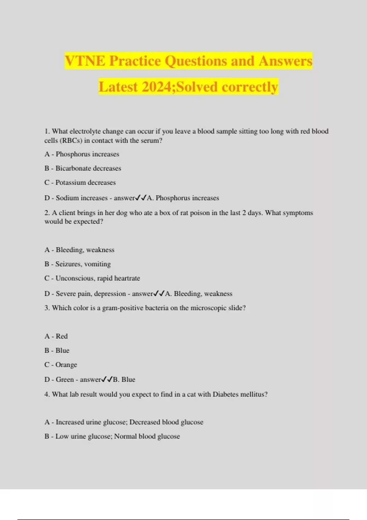 VTNE Practice Test Questions and Answers Latest 2024;Solved correctly