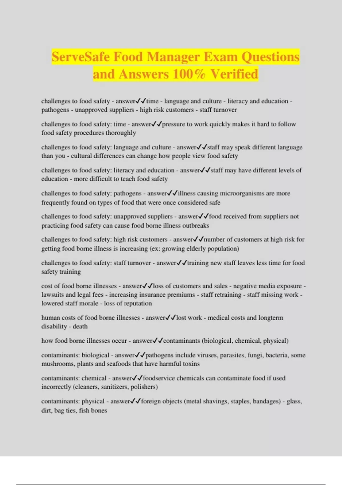ServeSafe Food Manager Bundled Exams 2024/2025 Full solution pack