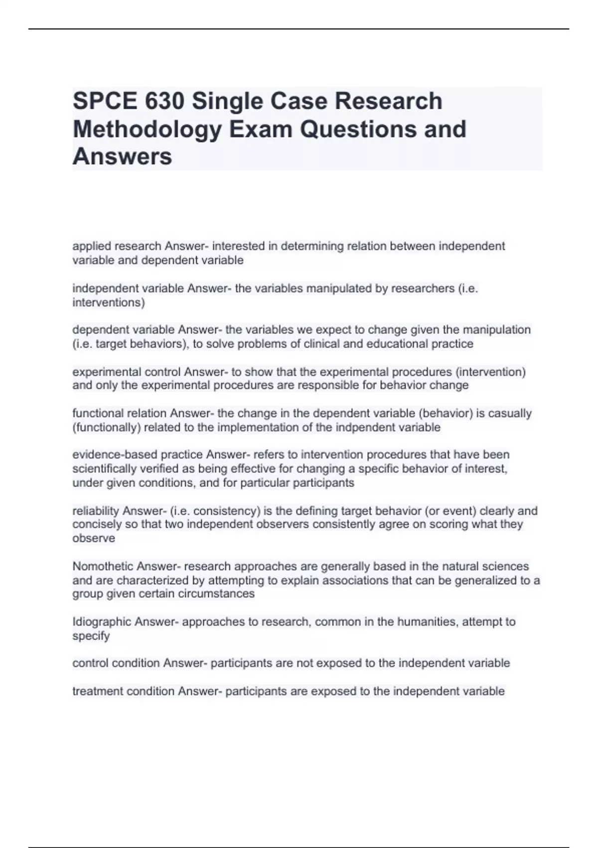 SPCE 630- Chapter 10 Exam Questions and Answers,SPCE 630 Exam 1 Questions and Answers,SPCE 630 Exam Questions and Answers- defining features of SCRD,SPCE 630 Exam Questions and Answers,SPCE 630 Final Exam prep Questions and Answers,SPCE 630 Final Exam Questions and Answers,SPCE 630- Final Exam Questions and Answers,SPCE 630 FINAL EXAM QUESTIONS AND
