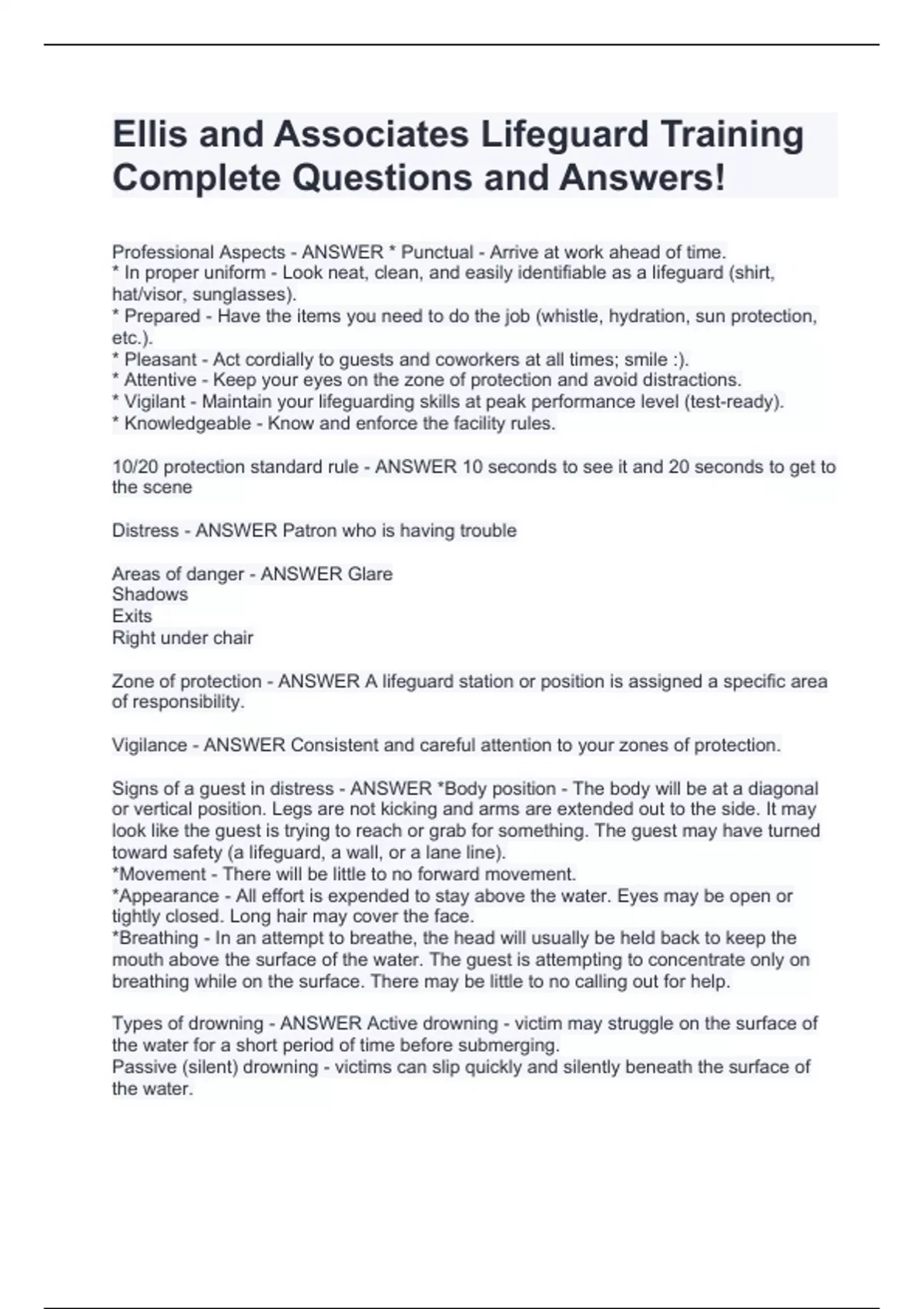 PACKAGE DEAL FOR Ellis and Associates Lifeguard Training Complete Questions and AnsPACKAGE DEAL FOR Ellis and Associates Lifeguard Training Complete QuestionsPACKAGE DEAL FOR Ellis and Associates Lifeguard Training Complete Questions and Answers! and Answers!wers!
