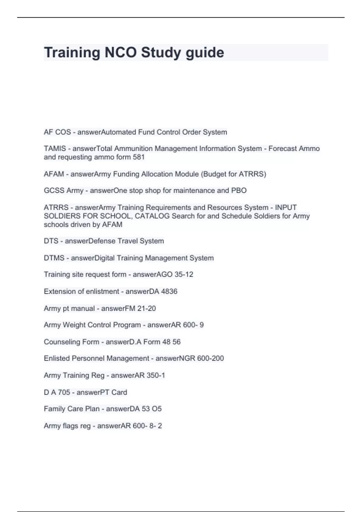 Exam (elaborations) AGR - SUPPLY SERGEANT QUESTIONS WITH CORRECT ANSWERS 2024 Exam (elaborations) Ammo 64 Questions and Answers 2024 Exam (elaborations) Ammunition Handler's Course Questions and Answers 2024 Exam (elaborations) Authorization to Request and Receive Questions with complete solutions 2024 Exam (elaborations) CH Mise En Place