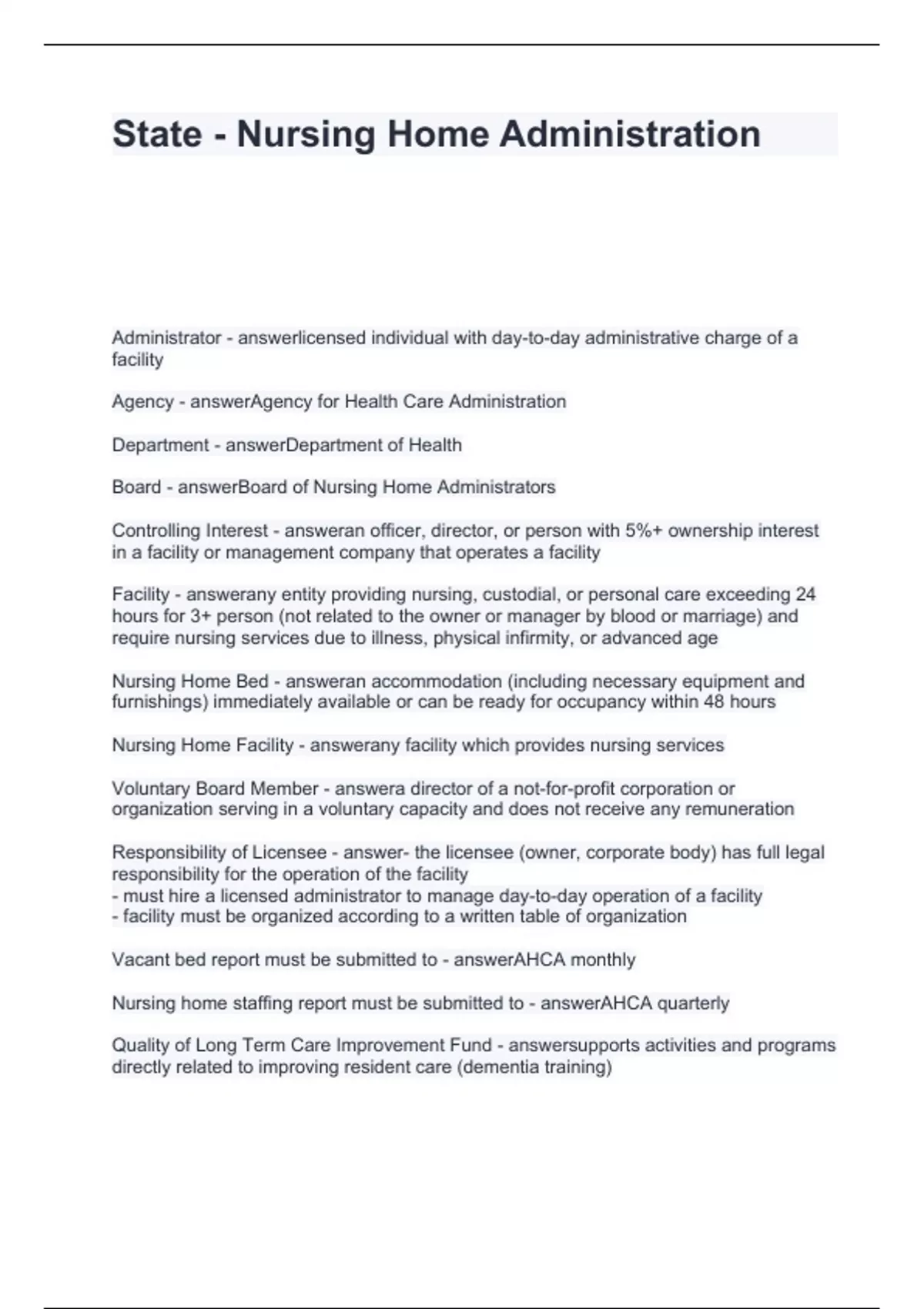 Exam (elaborations) Federal LNHA Exam- Resident Care Questions and Answers 100% Verified Exam (elaborations) Federal Nursing Home Administrator Exam Questions and Answers Graded A Exam (elaborations) General Statutes of NC - Nursing Home Administrator Act Questions with correct Answers 2024 Exam (elaborations) Illinois Nursing Home Administr