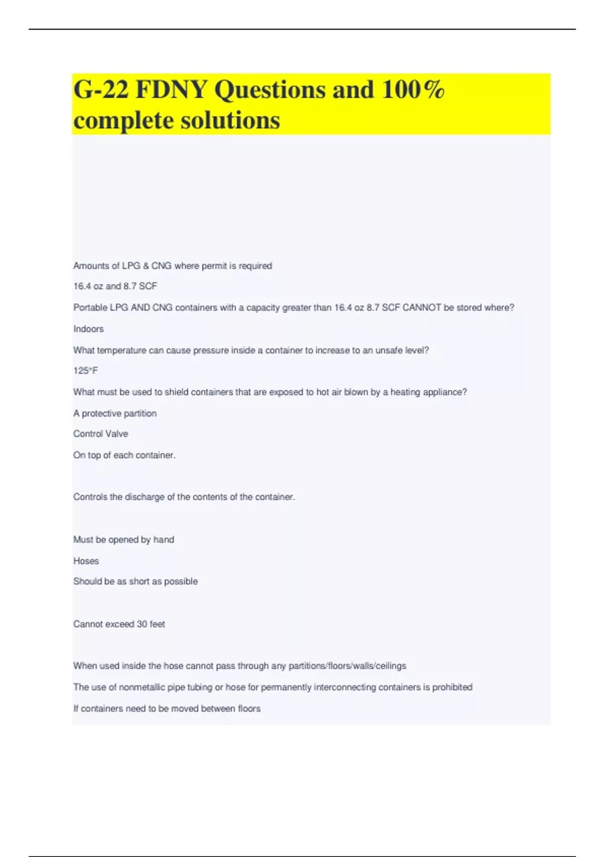 FDNY CoF G71 Questions and Complete Solutions 2024/2025