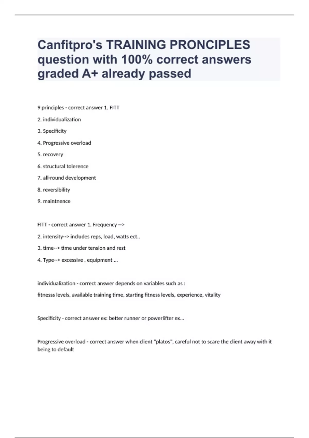 Can Fit Pro - Foundations of Professional Personal Training, 2nd Edition (Chapters 1-14) Question and answers 2024 verified to pass Exam (elaborations) Can fit pro practical exam Question and answers rated A+ 2024 Exam (elaborations) Canada citizenship test - timeline- important dates Question and answers 2024 verified to pass Exam (elaborati