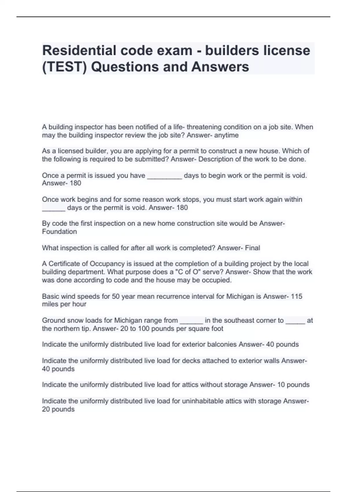 Builders License Exam Questions and Answers,Builders License Exam Questions and Answers,LARA - Residential Builders - State of Michigan Exam Questions and Answers,MI Builders Class Exam Questions and Answers,MI Builders License Exam Questions and Answers - Insurance, bonds, liens,MI Residential Builder Test Prep Questions and Answers,Michigan Build