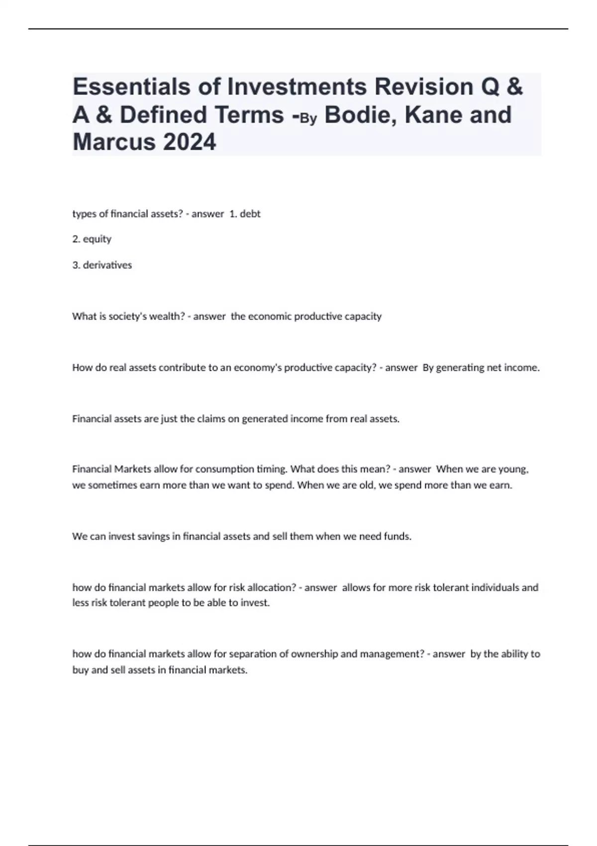 Essentials of Investments Test Bank 2024.. Revised Edition with 100% Correct and Verified Questions and Answers.