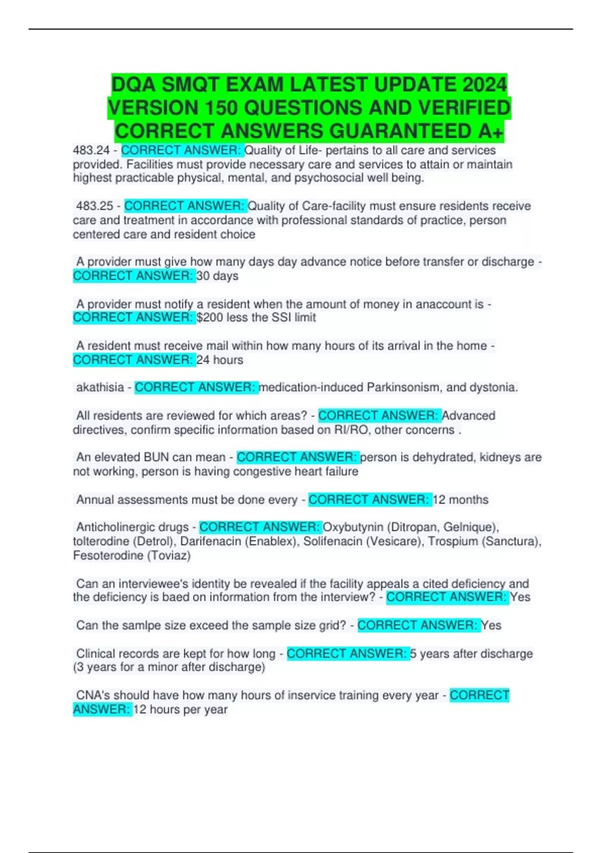 SMQT- SURVEY & CERTIFICATION BACKGROUND EXAM 2024 & DQA SMQT EXAM LATEST UPDATE 2024 VERSION