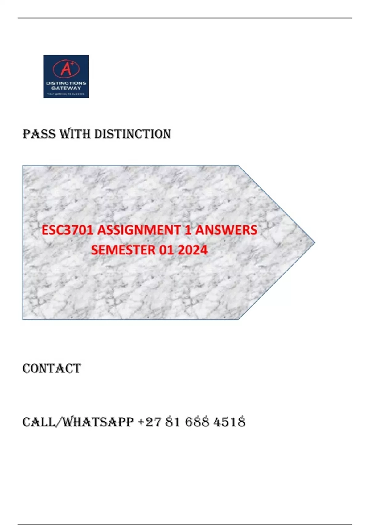 ESC3701 ASSIGNMNET 1 CMG3701 ASSIGNMENT 1 ANSWERS 1st SEMESTER 2024.PASS WITH DISTINCTION