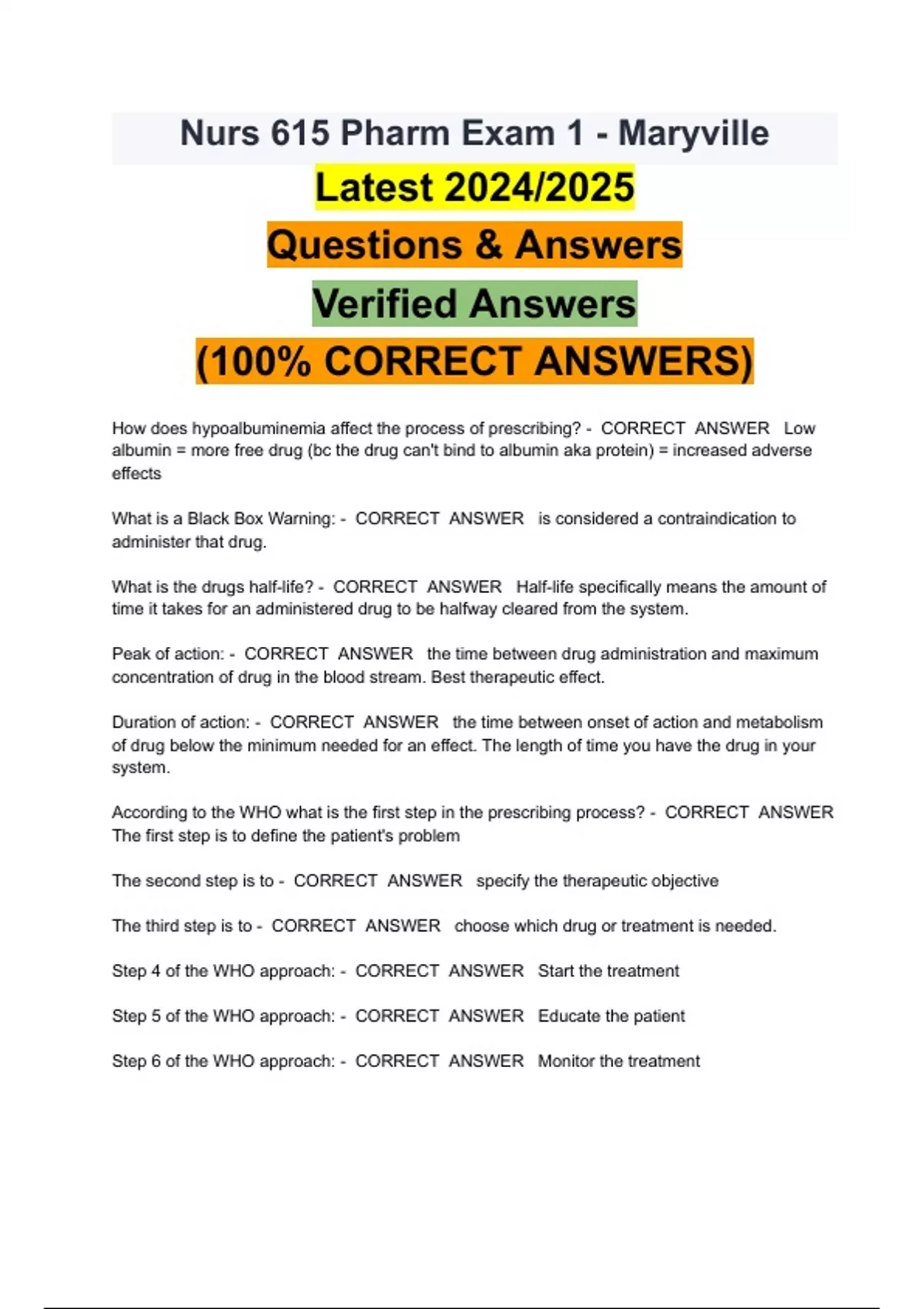 Nurs 615 Pharm - Maryville Exam||| ACTUAL BUNDLE 2024 ||FULL PACKAGED SOLUTION ( A+ GRADED 100% VERIFIED)