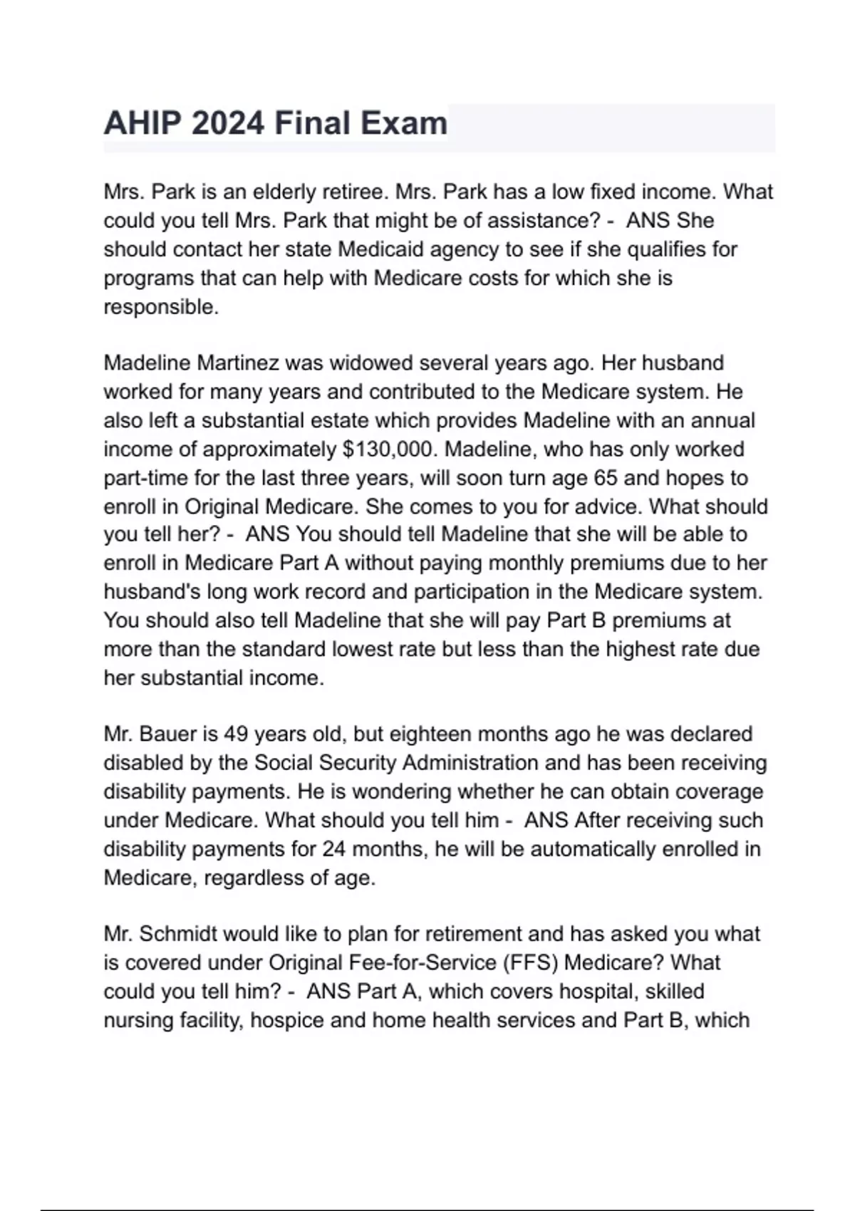 AHIP - Final Examination Questions with correct Answers 2024/2025( A+ GRADED 100% VERIFIED).