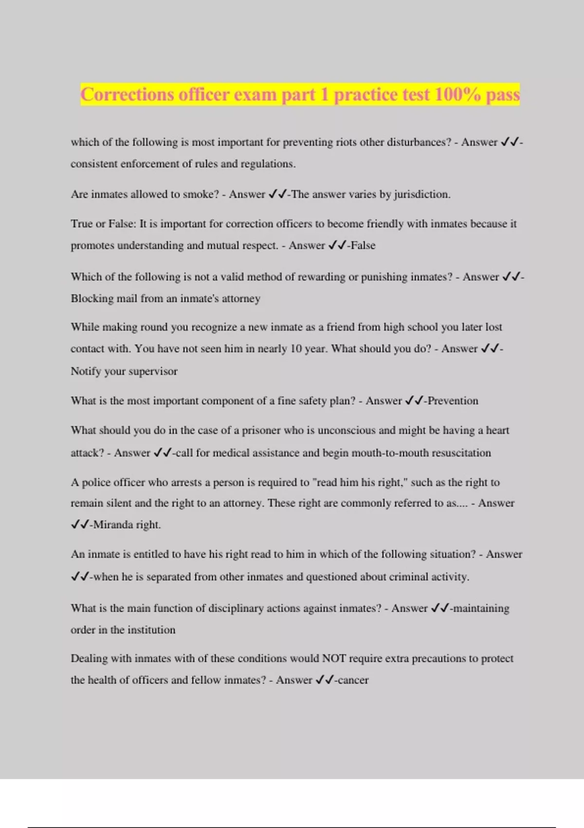 Corrections Officer Exam Questions and Answers Graded A+