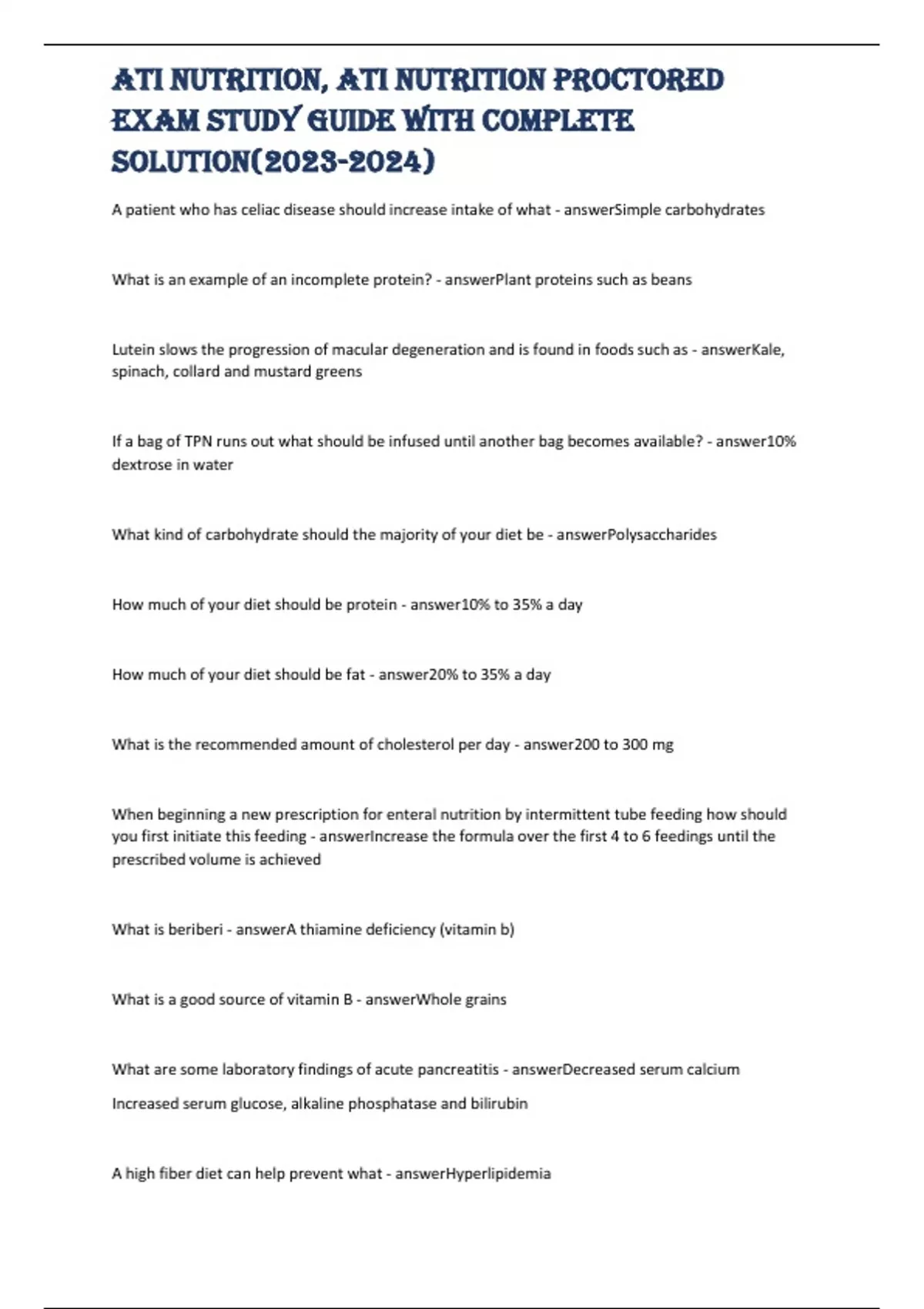 ATI nutrition, ATI Nutrition Proctored Exam Study guide with complete solution()