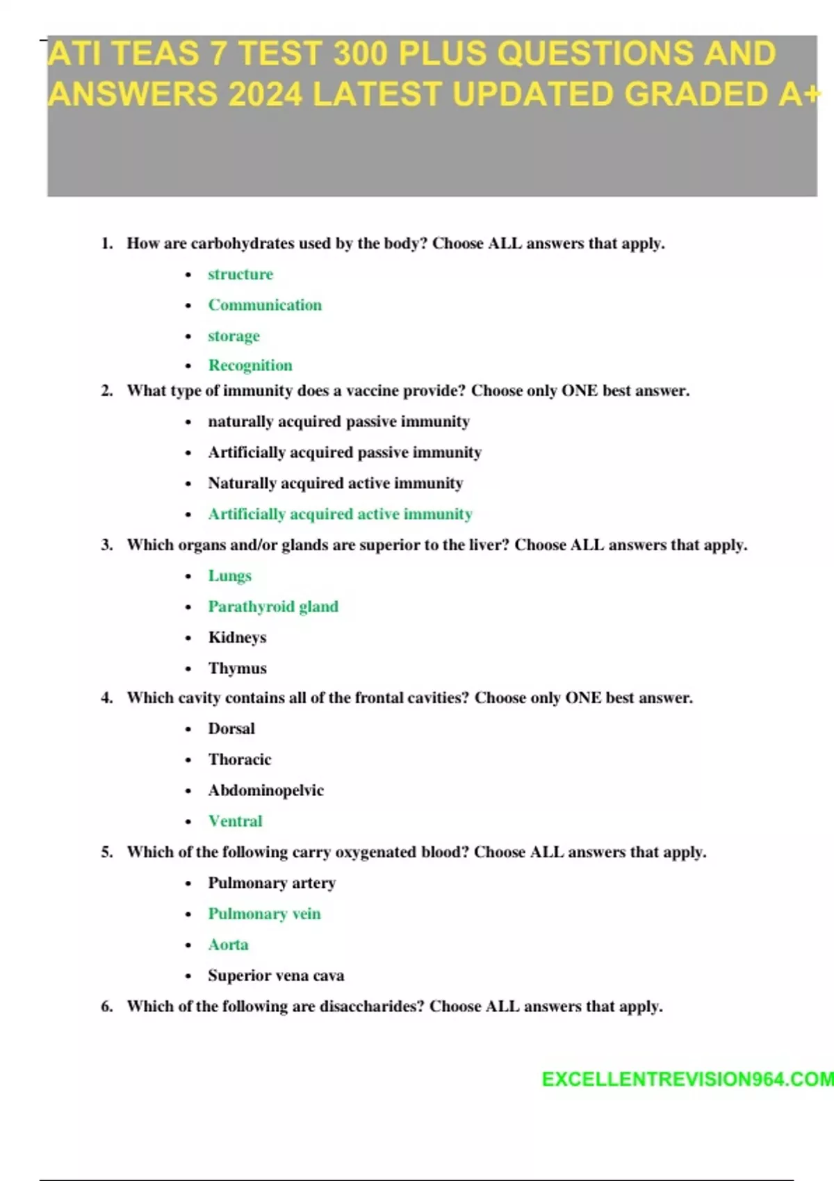 ATI TEAS 7 Science 2024 REVISIED QUESTIONS AND ANSWERS