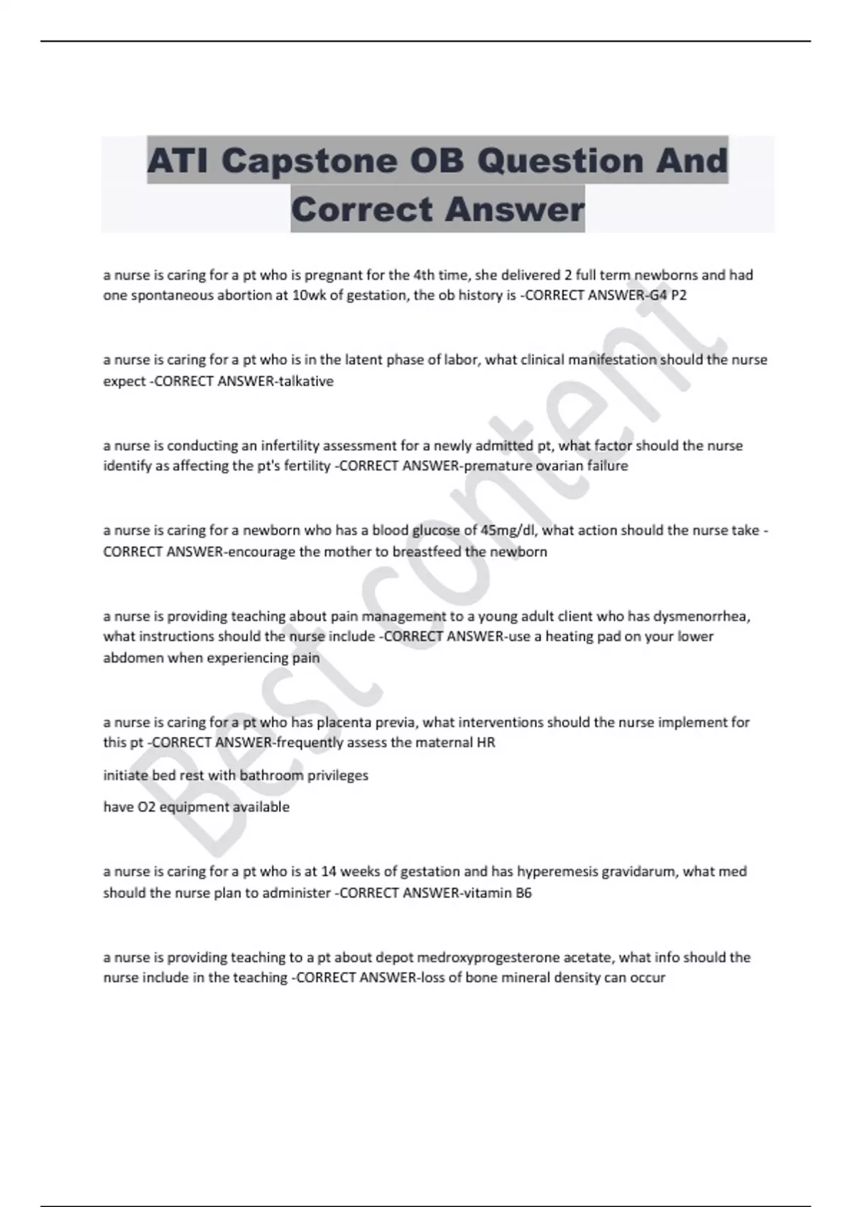 Maternal Newborn Alternate Final Exam Study Guide 2024 Pediatrics Capstone Question & Correct Answer| Maternal Newborn & Women s Health Study Test Exam With Correct Answers ATI Capstone Care Of Children Test Review 2024 Maternal Newborn Assessment 1 Exam 2024 Question & Answer ATI Remediation - Maternal Newborn Test Exam With Complete So